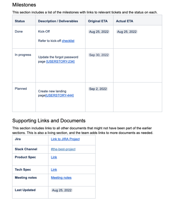 The best way to start – understand from other PMs what’s worked in the past. If that’s not an option, work directly with the internal stakeholders (or internal customers) to co-create templates for each case.