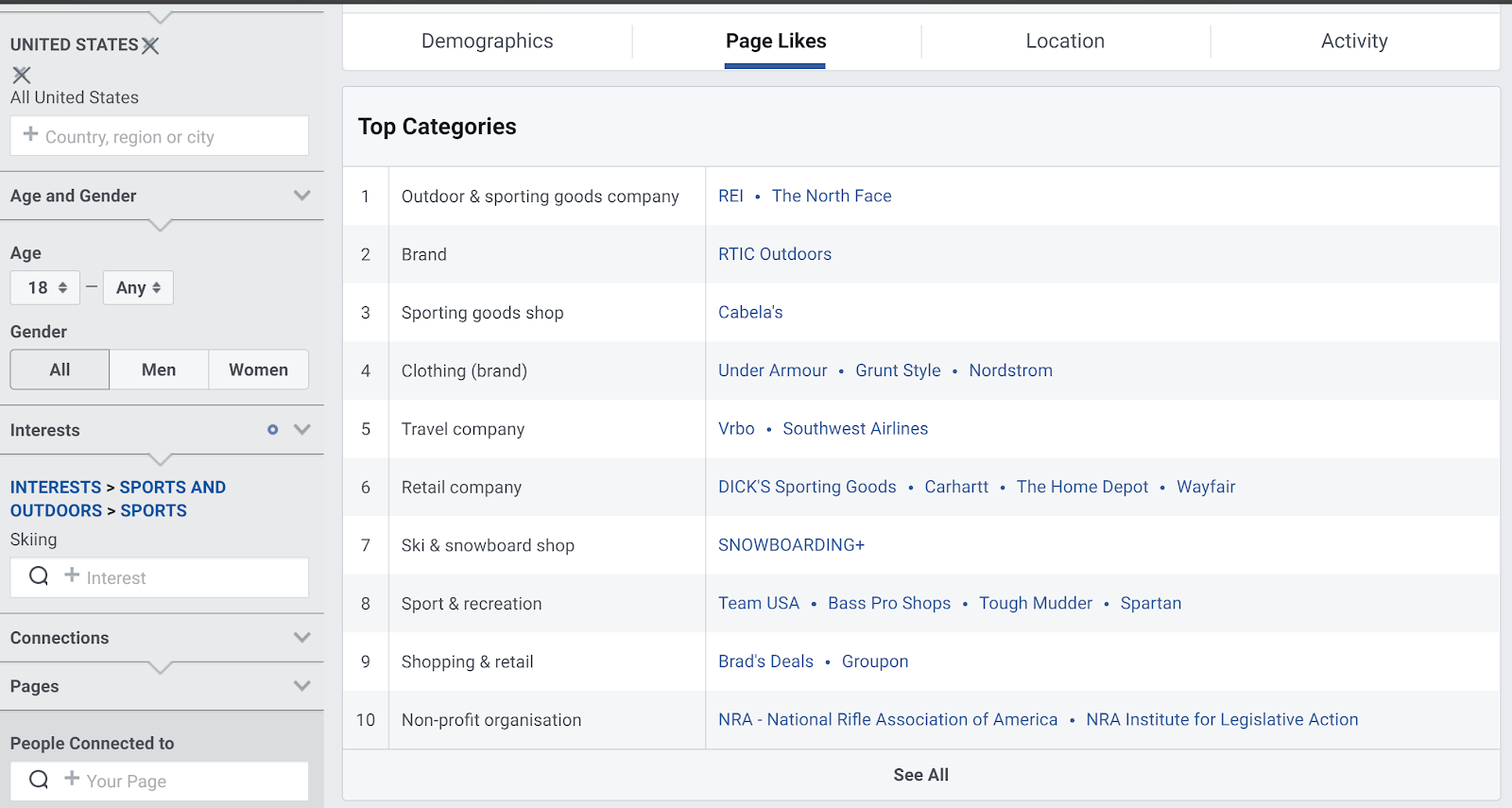 Some ideas may not exist as a targeted interest, but they will provide some inspiration. Add all the targeting interests to your list of interests. Repeat this process until you find enough targeting audiences for your ads.