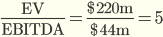 Applying the formula, the company has an EV/EBITDA ratio of 5:
